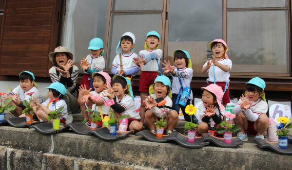 昨年は、ふたじまようちえんのこどもたちが、お花を飾ってくれました。