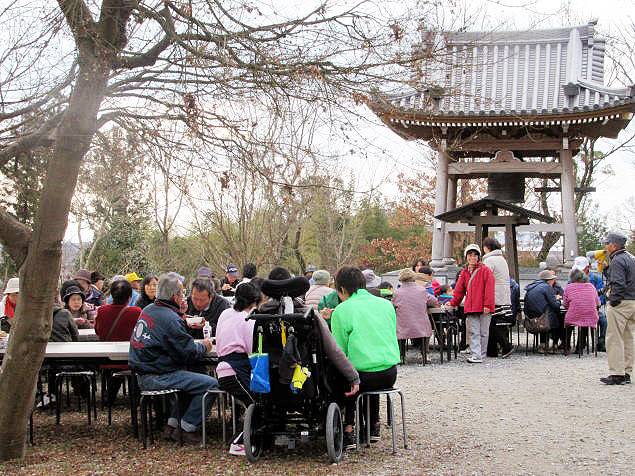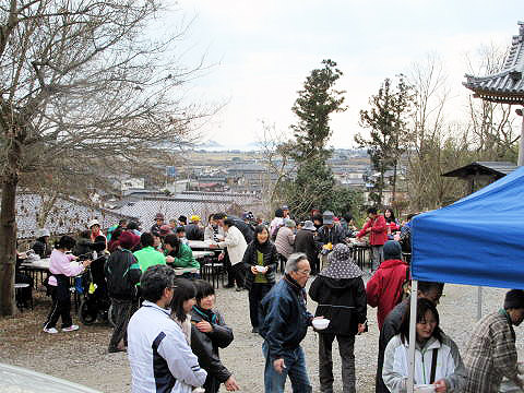 竹林ボランティアの方々の、イモ煮ときなこ餅のお接待があります。