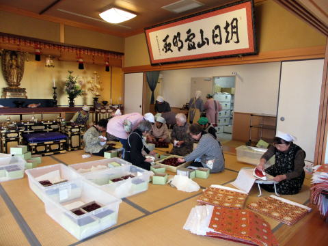 何千個とあるお霊供膳の食器の片付け風景です。
