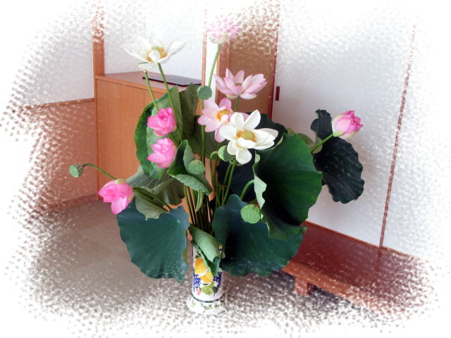 仏教講座 119回 2016年8月9日 毎月第2火曜日に行われる仏教講座も 来月でちょうど10年を迎えます 今月のテーマ 1.お盆 施餓鬼供養について 2.風壽文の中の言葉 六大について 嵯峨天皇が表現されたお華の「六大の世界」 お寺にお花は欠かせないものです 今日も吉松様から届いた蓮の花で皆様を温かく厳かにお迎えできました おうちでの仏壇やお墓にもお花は欠かせません 今日の仏教講座で学ばれた仏の心を これからもお花を生けられるときには今まで以上に大切にされることでしょう きれいですね