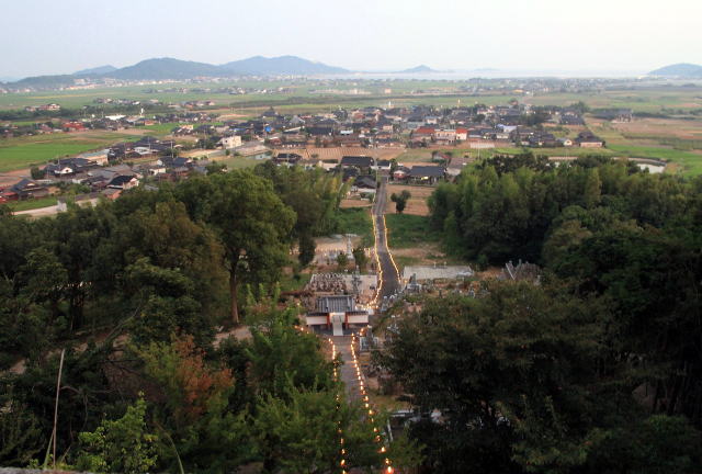 本堂からの眺めです。 参道 正門 遠くには瀬戸内海が広がります。