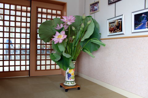 ホールでは、皆様が生けられたお花が彩りを添え、