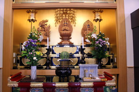 ご本尊様、各家の位牌壇に皆様の手によるお供えがされます