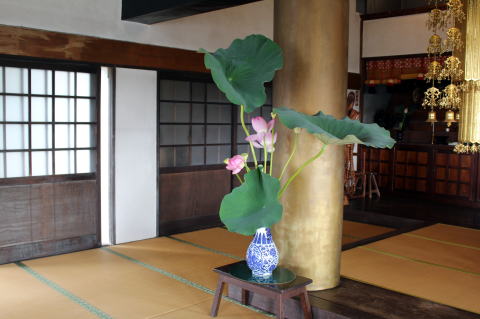 蓮の花のお供え 本堂