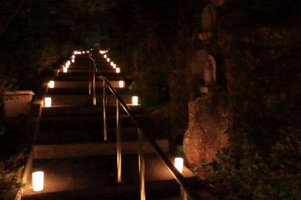 千燈夜 2017年8月13日 お盆の迎え火 千燈夜 山内では、ご先祖様を1500本の燈明でお迎えします 本堂でのお盆供養 各家のご先祖様の供養と家内安全を祈願します 燈明に照らされた山内 本堂へと続く参道 ご先祖様もお通りでしょうか 静かな時が流れます 子供達に大人気のアンパンマンもお迎えです たくさんの方がお参りくださいました ご先祖様とともに過ごすお盆 やさしい燈明の灯りに包まれて 今年も迎えられました ご尽力くださいました皆様 ありがとうございました
