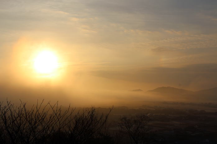 本堂からの日の出です 右手にうっすら秋穂の里と山影がみえます