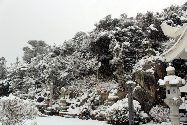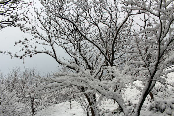 雪景色 2018年2月11日 朝 目が覚めると 秋穂の里に雪が舞っていました 山内は一面の雪化粧でした 雪が積もった木々には たくさんの蕾がふくらんでいます この雪も 日が昇るとほとんど溶けてしまいました 春ももうすぐですね