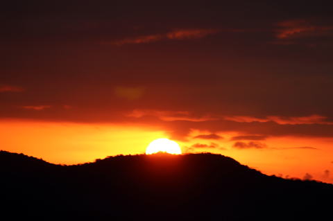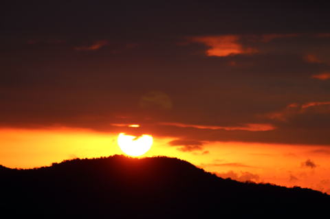 お日様だけにカメラのピントを合わせるとこんな写真になってしまいました