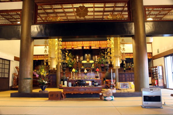 謹賀新年(本堂) 2019年1月1日 新春を迎え皆々様のご健康とご多幸をお祈り申し上げます 山内の松、竹、梅、南天 そして村田家からの葉ボタンで手作りされた門松です 本堂 秋穂八十八ヶ所霊場 五十八番札所 ご本尊 千手観世音菩薩 ご真言 おん ばざら たらま きりく お参りありがとうございました