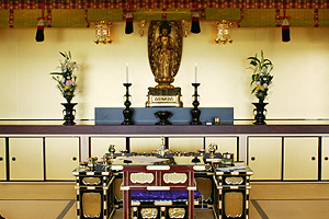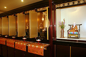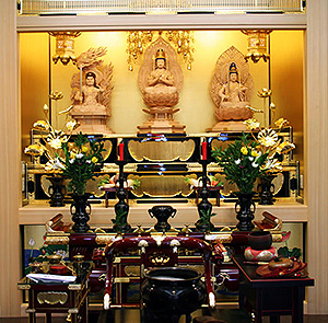 朝日山霊明殿は、いつも季節の花に彩られ、お参りが絶えません。